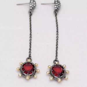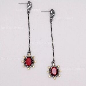 Alexis Bittar two tone gold black crystals pierced drop linear Earrings red stone NWOT