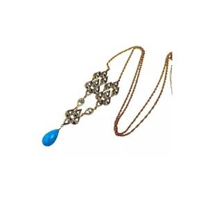 Keywords: gold tone necklace, turquoise pendant, y necklace, teardrop necklace, fashion jewelry, statement necklace, women's necklace, gold jewelry, blue necklace, gift for her, elegant necklace, party jewelry, boho necklace, bohemian jewelry