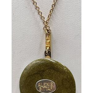 Alexis Bittar Handcrafted White Lucite Pendent Necklace Gold Backing Signed