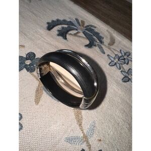 Alexis Bittar Hinged Bangle Bracelet Black Lucite Silver Tone Modern Designer