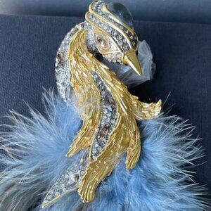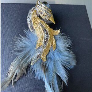 Alexis Bittar LOVE BIRD| Crystal, Lucite & Feather Brooch
