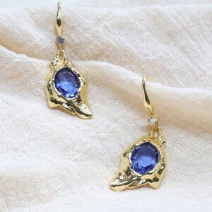 Alexis Bittar Sodalite & Quartz Brut Doublet Drop Earrings Gold