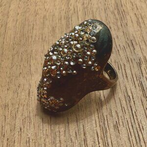 Alexis Bittar Swarovski Crystal Dome gold Cocktail ring - vintage