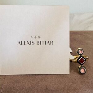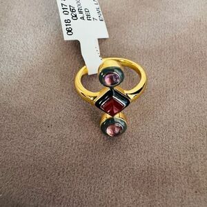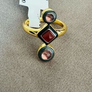 Alexis Bittar Vitreum 14K Goldplated Carnelian Amethyst Linear Ring, Size 8 NWT
