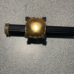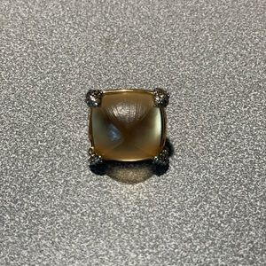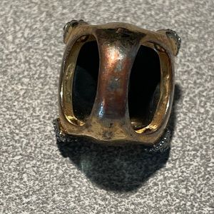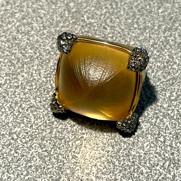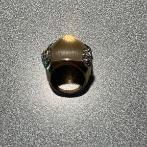 Beautiful lucite and accented crystals ring. Perfect condition with lucite pyramid dome. Scratches at metal as shown in photos.