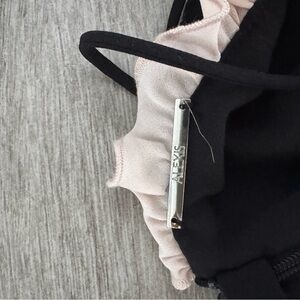 This striking gown by Alexis features a sophisticated black and white color palette, perfect for a cocktail or night out. The sleeveless design boasts a halter neckline with a daring plunge and a captivating cut-out detail, adding a modern edge to its elegant silhouette. The backless style enhances its allure, making it a standout piece for any special occasion.