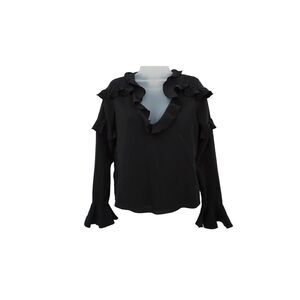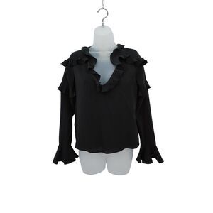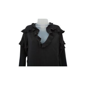 Alexis Blouse Women's Size XS Black Silk Ruffle Pullover V-Neck Top