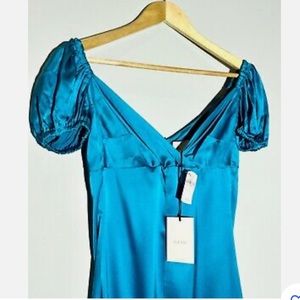 Super Cute! Puff sleeve, can be worn on or off the shoulders. The material is super stretchy. Zipper on the back. 95% silk 5% spandex Size Small,New with Tags *Accepting Offers*