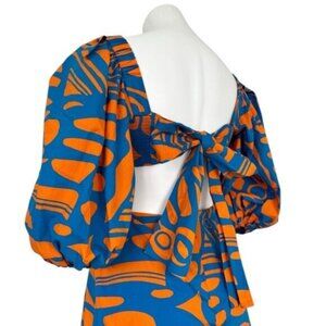 Alexis Bodhi Indigo Blue Orange Puff Sleeve Cut Out Mini Dress Size M