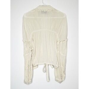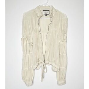 Alexis Boho Ruched Blouse Long Sleeve High Neck Front Zip Women Cream Size Large