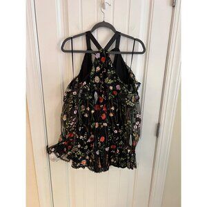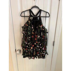 Alexis Brenna Romper Black Garden Embroidered Floral Cold Shoulder Sx Small NWT