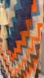 Vibrant maxi dress with a zigzag pattern. Features blue, orange, and cream colors.
