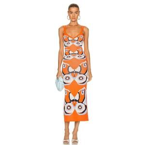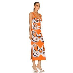 Alexis Chiarina Butterfly-Print Midi Knit V-Neck A-Line MIDI Dress Sz M Orange
