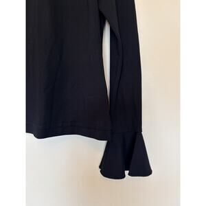 Alexis Classic Black Mock Neck Bell Sleeve Zip Back Stretch Top Shirt Small