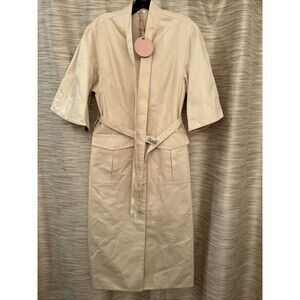 Alexis Coat Dress Collared Long Belted Pockets Short Bell Sleeve Cream SZ M New