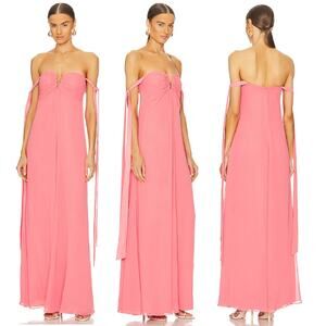 Alexis Dali Off-Shoulder V-Wire Neck Chiffon Long Dress Coral Pink Womens Size S