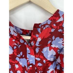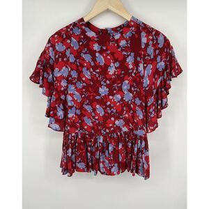 Alexis Danijela 100% Silk Red Floral Ruffle Button Front Cape Blouse Size XS