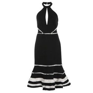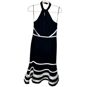 Alexis Doriaan Dress Black & White Fringe Flounce Halter Medium