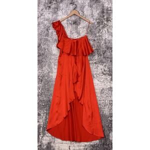 Alexis Dress Small Womens Austyn Red Silk One Shoulder Ruffle High Low Hem Maxi