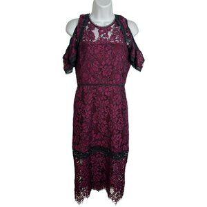 Alexis Evie Lace Sheath Burgundy Midi Dress Cold Shoulder Wine Medium