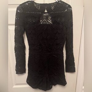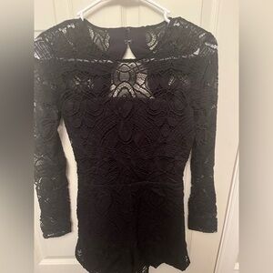 Alexis Exclusive Taylor Swift Black Lace LS Crew Neck Open Back Mini Romper XS