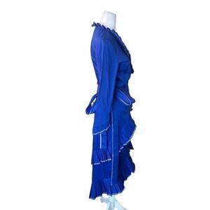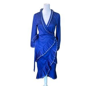 Preowned Alexis Hallie Wrap-Front Cotton Dress with Pleating Detail Size Small. Well taken care of dress with no known flaws. Mykonos Blue.