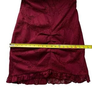 Alexis Ilana Lace Mini One Shoulder Dress with ruffle trims and ruching for a very feminine silhouette. Dress was purchased from a sample sale of items not rented out, so has not been worn. Please see pictures for more details and measurements.