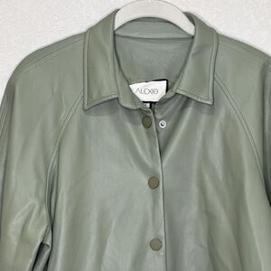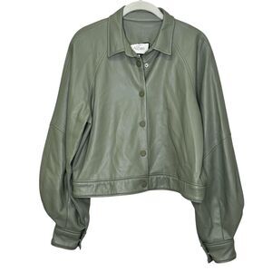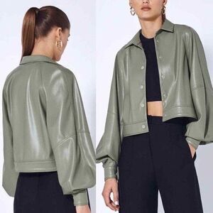 Alexis Jacket Womens Medium Sage Faux Leather Cropped Snap Front Puff Sleeves