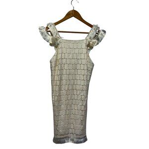 Alexis 'Jasmine Paneled Tas-sel Trim Shift Dress' Size XS Womens - White