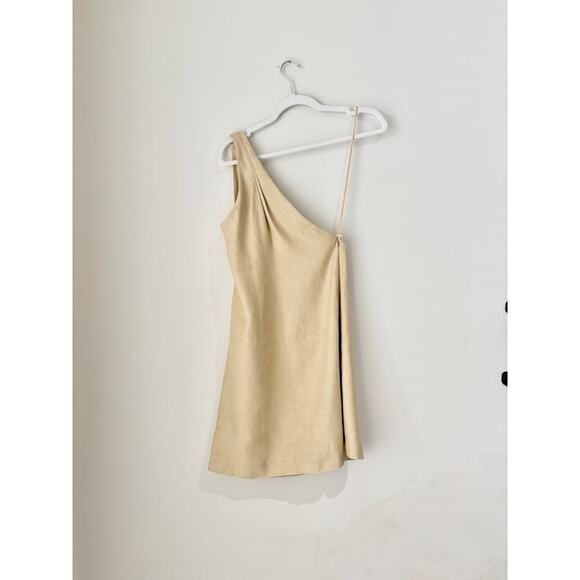 Alexis Jenell Asymmetric Halter Open Back Mini Dress With Button Beige Women's S