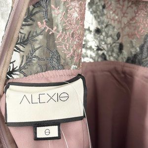 Alexis Jeslyn Embroidered Illusion Long Sleeve Maxi Gown in Marine Embroidery