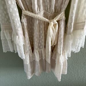 Alexis Katerina Ruffle Long-Sleeve Polka Dot Mini Dress Cream Size M $594