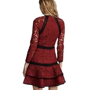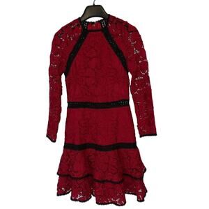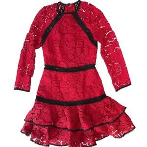 Alexis Kharis Lace Ruffle Red Mini Dress Black Trim Size Small