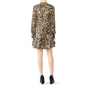 Leopard spots and a tie neckline add to the wildly charming look of this swingy drop-waist Alexis dress. Super cute four-button sleeves, neck tie.