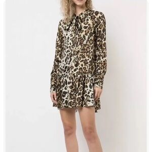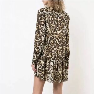 Chic leopard print dress by Alexis. Features long sleeves and a playful ruffled hem. Perfect for a stylish outing. Size XS