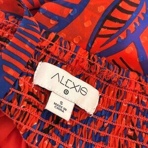 Alexis Midi Dress S Red Blue Tie Shoulder Asymmetric Hem EUC Tropical Target