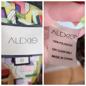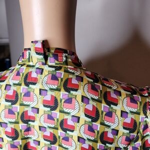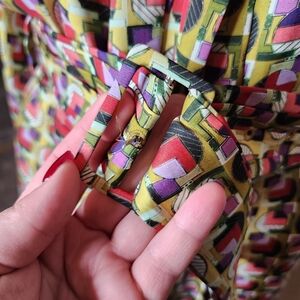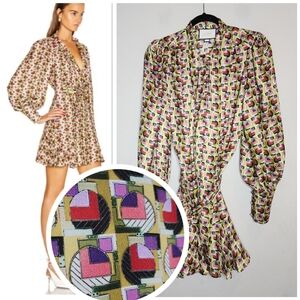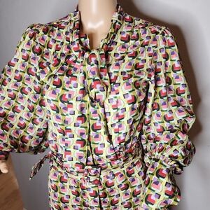 Alexis Mirene Belted Dress Puff Sleeves Button Front Green Pink Purple Geo Small