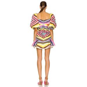 Alexis Montaigne Maui Raffia Trim Multicolor Puff Sleeve Mini Dress Maximalist