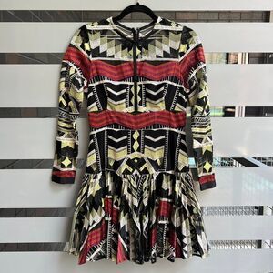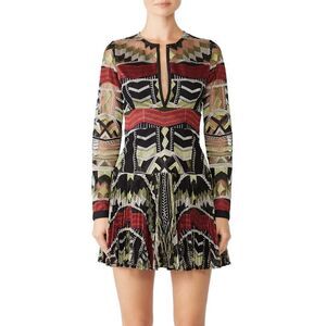 Alexis Nalory Pleated Long-Sleeve Embroidered Dress Size S