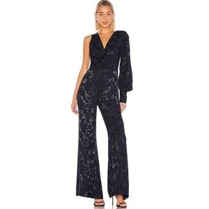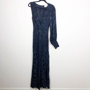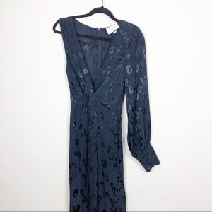 Alexis Naoki Leopard Print Jumpsuit Navy Blue Small Wide Leg Formal Cocktail