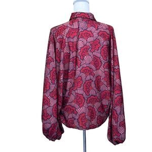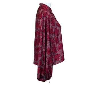 Alexis Nicolette batwing top, pink/maroon gingko leaves, large, dramatic, artsy