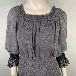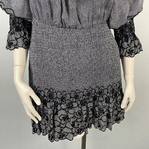 Alexis Off Shoulder Smocked Mini Dress Embroidered Blue Size Small Resort Summer