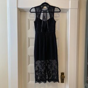 Alexis Oralie Black Lace Mock Neck Cut Out Midi Dress