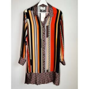 Alexis Payton Striped Long Sleeve Button-Up Shirt Dress Multi Women's Size S NWT
