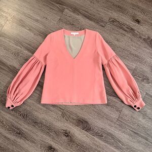 Alexis Pink V-Neck Balloon Sleeve Blouse