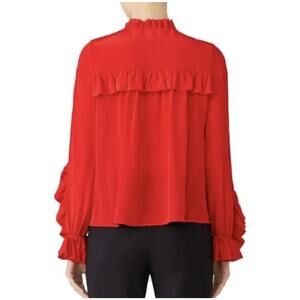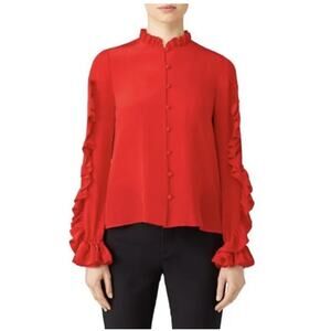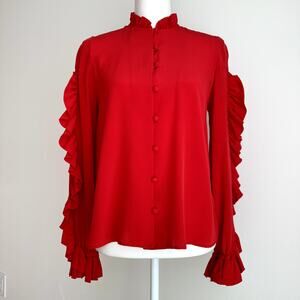 Alexis Rocio Silk Ruffle Trim Blouse Button Front Long Sleeve Red Romantic XS