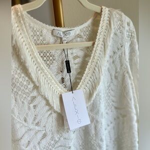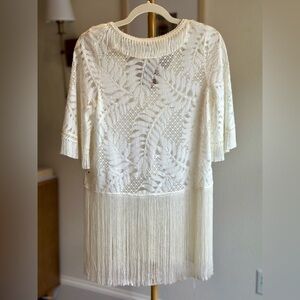 Alexis Ronan Cream White Lace Boho Top with Fringe- Size XS