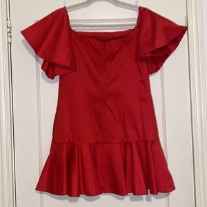 Alexis ruffle dress, size small, ruffle sleeve and hem, usually worn off the shoulder, cotton blend, boning inside bust of dress, back zip closure, new without tags