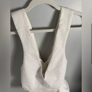 Sleek and sophisticated, this white deep V-neck peplum top blends modern minimalism with a flattering feminine shape. Featuring a structured fit, plunging neckline, and open-back cross straps, it’s perfect for date nights, dinner parties, or chic work-to-evening looks.