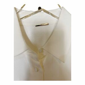 Alexis Silky Button Down Blouse Back Slits LS Sz M Ivory